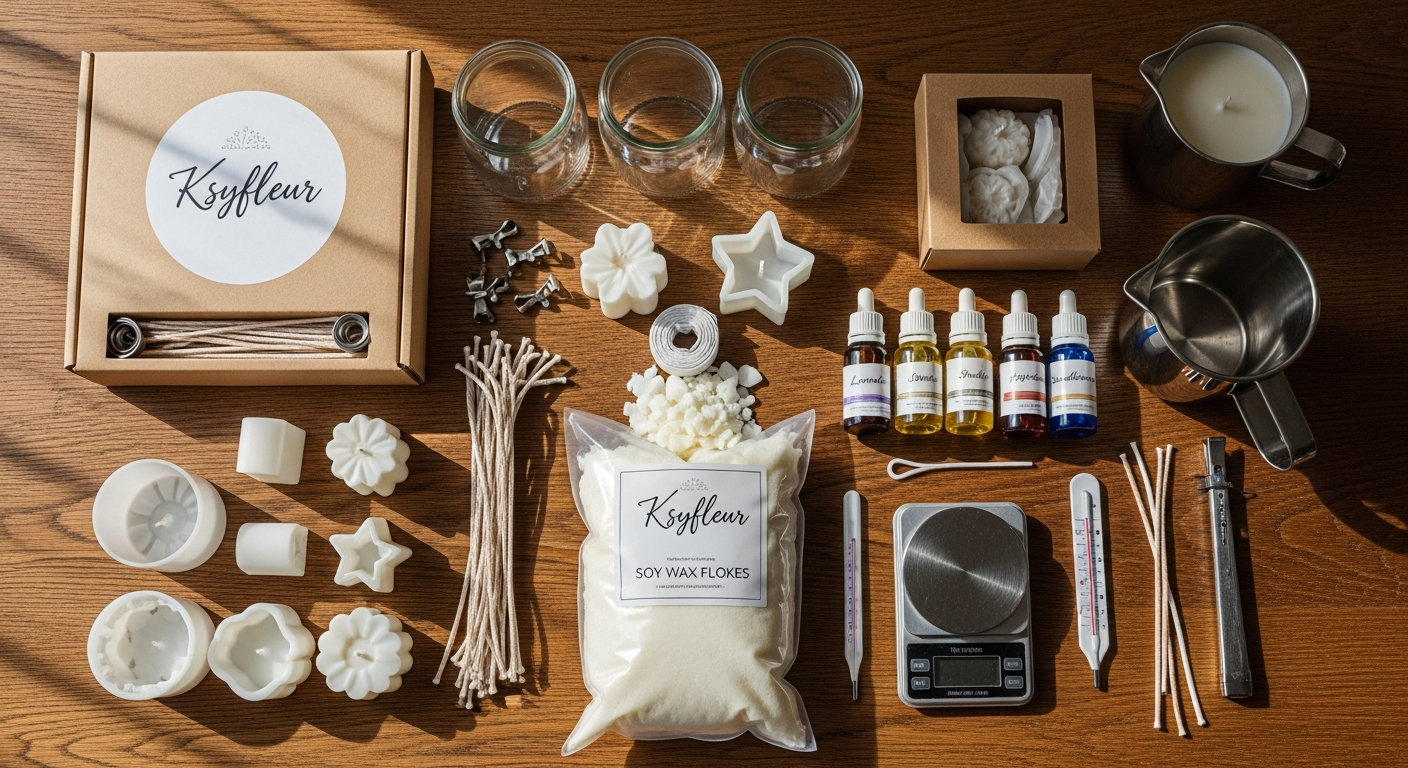 Для свечеварения начинающим потребуется базовый набор: воск (парафин, соевый или пчелиный), фитили хлопковые или деревянные, емкости для плавления, формы (стеклянные банки, силиконовые молды), держатели для фитиля и инструменты для водяной бани. Дополнительно понадобятся красители и ароматизаторы, специально предназначенные для свечеварения, термометр и лопатка для перемешивания.