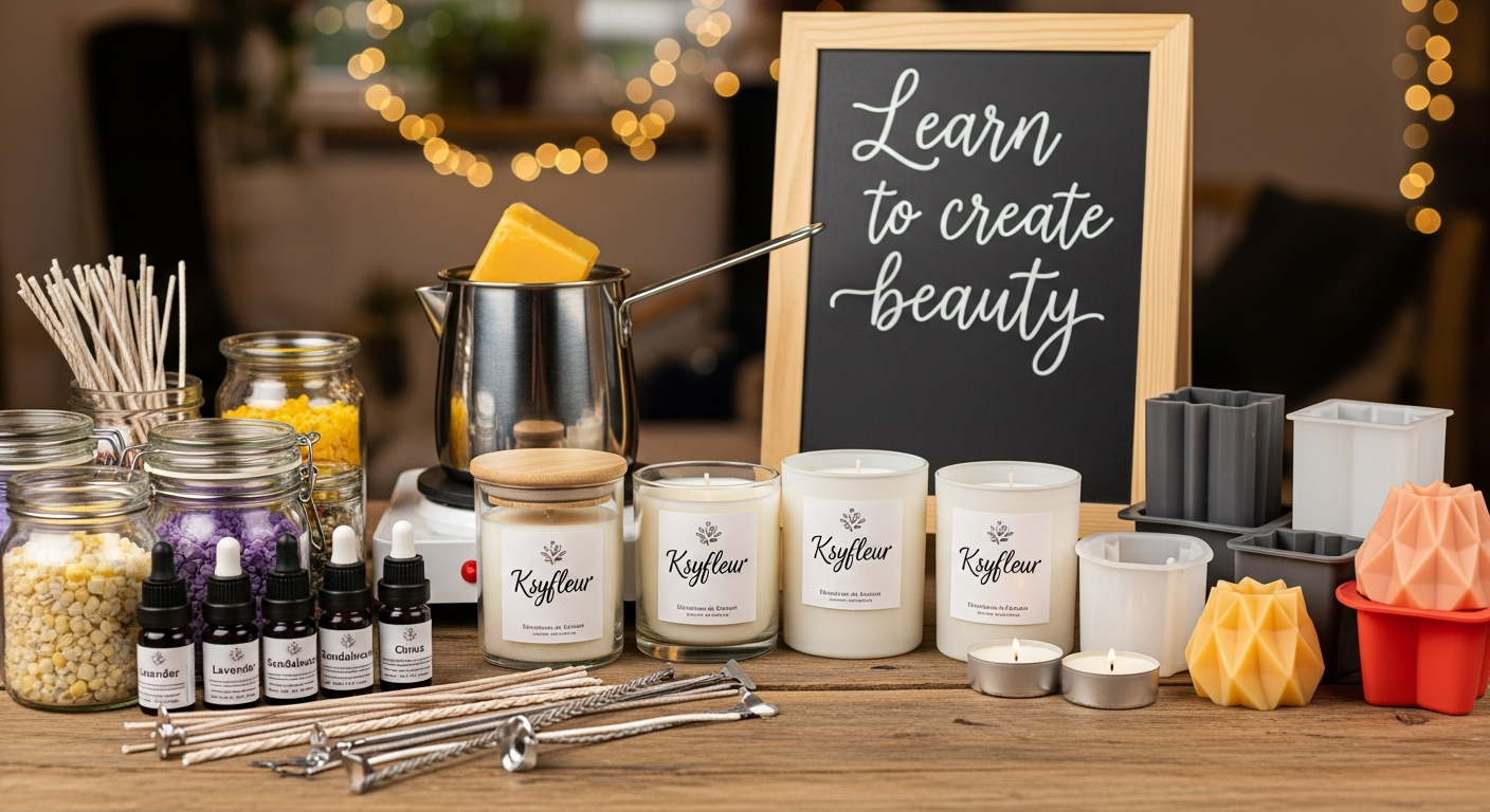 На курсах для начинающих вы работаете с формами: стеклянными баночками, силиконовыми молдами, керамическими чашами. Преподаватель показывает технику заливки при температуре около 42°C - быстрое заполнение формы предотвращает полосатость и неровности поверхности. Это тот момент, когда теория превращается в навык рук.