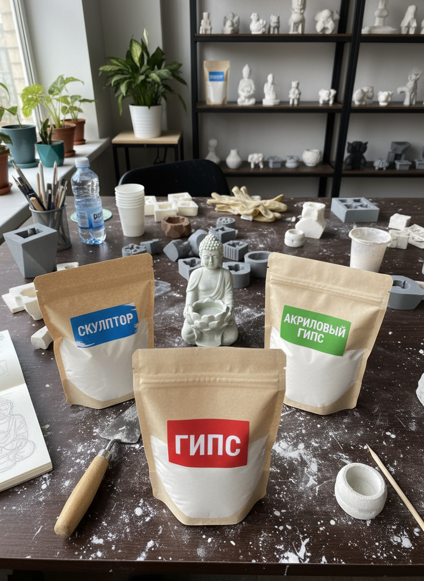 Порошок для творчества и декора представляет собой измельченный минерал тонкого помола без посторонних включений. Строительные варианты с добавками не подходят для художественных работ - они дают грубую текстуру и непредсказуемое поведение смеси. Чистый состав обеспечивает плавное застывание, точную передачу мельчайших деталей формы и безупречную белизну готовой работы.
