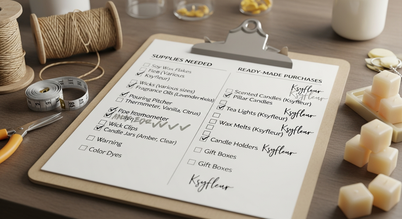 Многие пытаются купить сразу большой набор для свечеварения – десятки красителей, ароматизаторов, формы всех размеров. Это ошибка для начинающих: вы ещё не знаете, что вам действительно нравится, какой воск удобнее, какие ароматы раскрываются лучше. Начните с минимального чек-листа, постепенно дополняйте его по мере освоения техники.